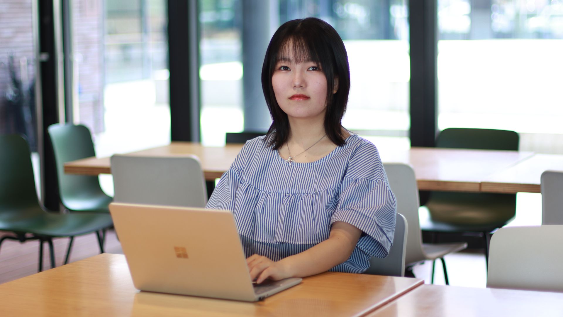 当初は就職を考えていたが、今は「2年間の短期大学では足りない、もっと学生のうちにできることをやっておきたい」という思いから、大学への編入を視野に入れている。「1年生で受けた経営学の授業が面白くて。企業の戦略を分析する分野は、分析や考察が好きな私にぴったりだと感じました。普段消費者としてしか考えない企業のことを、視点を変えて分析することに面白さを感じています」と、興味の先に描く「経営学部」への思いを話す。