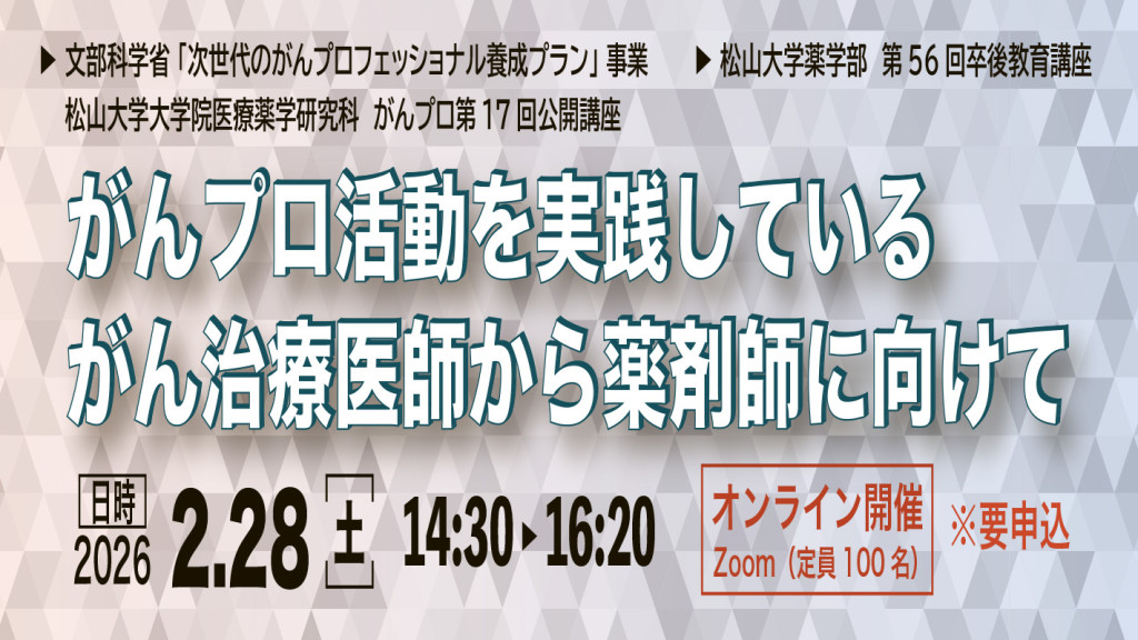 また、当日は、松山大学9号館(薬学部棟)にて、第47回「くすりと薬草展」及び市民公開講座「第21回薬剤師会お薬セミナー」も同時開催いたします。