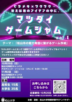 松山大学では、松山大学情報学部PRアンバサダー企画・運営による「マツダイゲームジャム vol.1」を開催します!