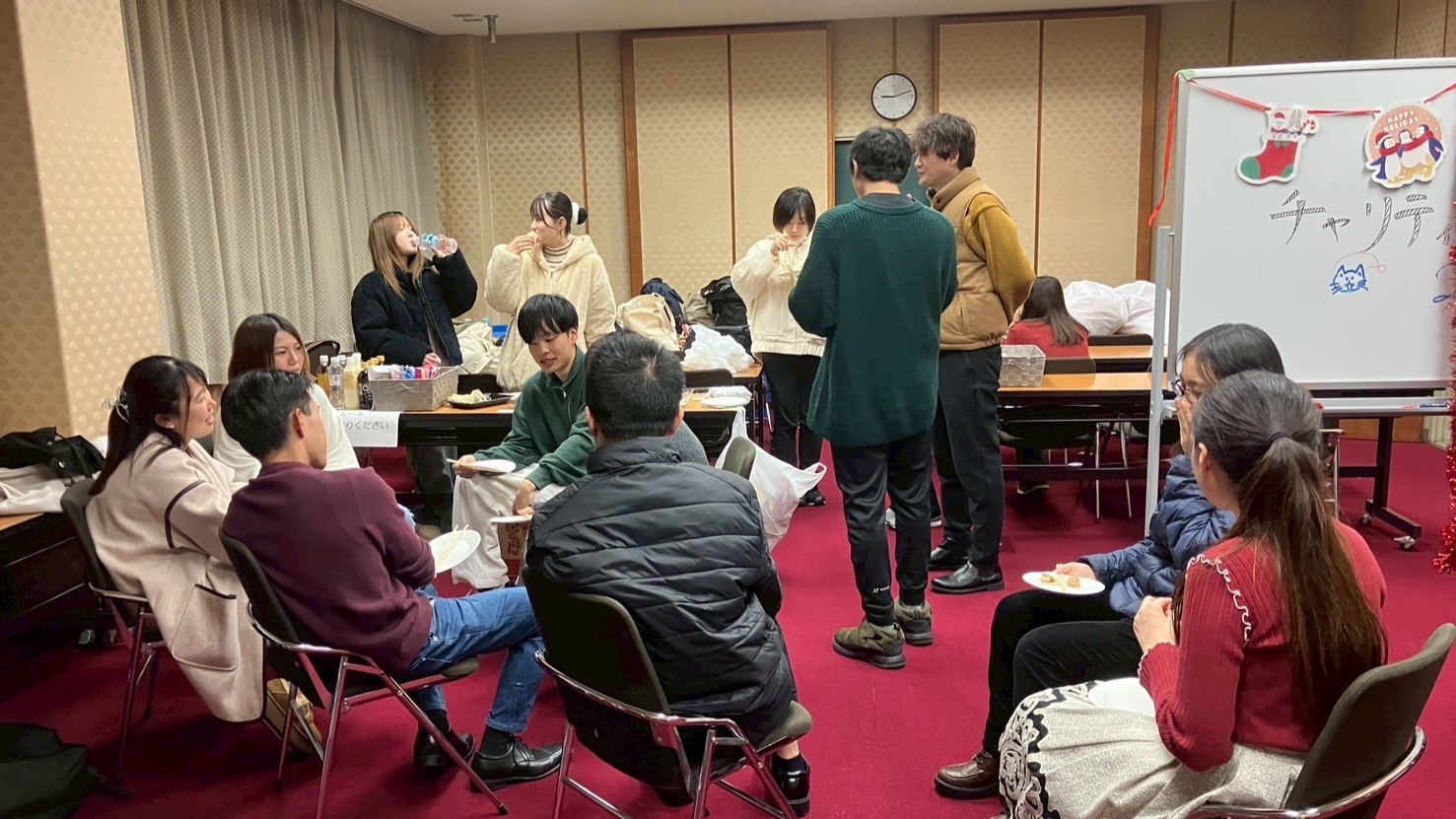 活動終了後は会場に戻り、みんなで感想などを話しながらご飯を食べました。とても有意義な4か月でした。