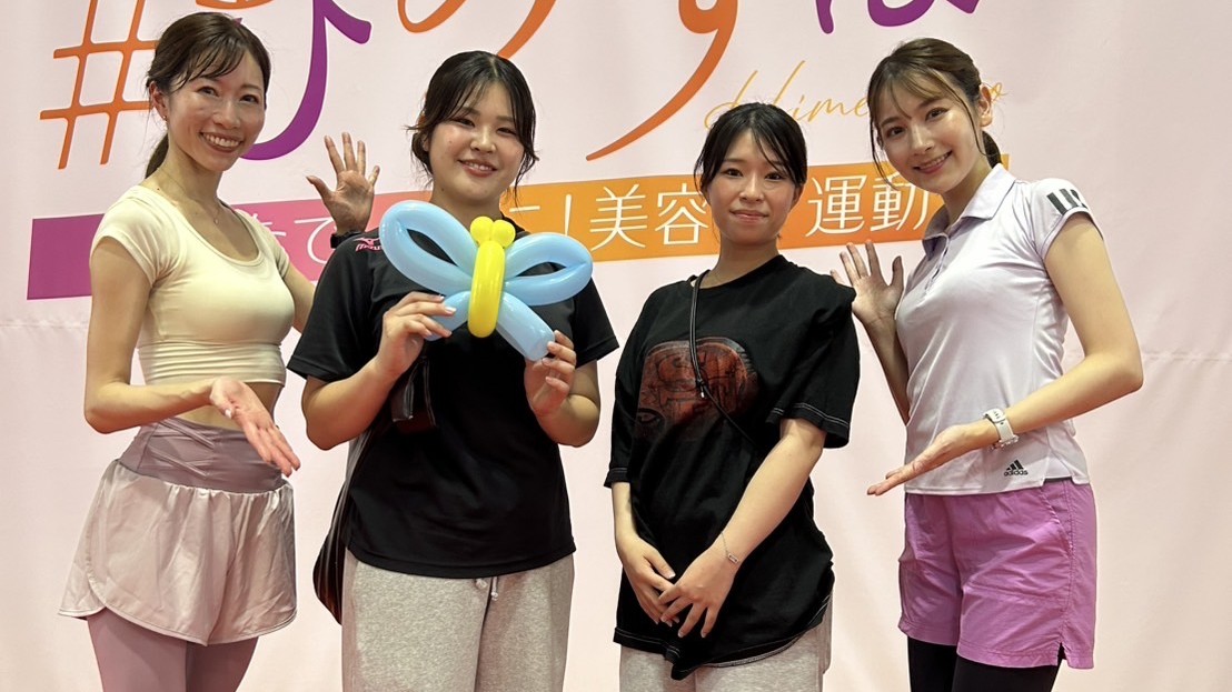 活動内容は来場者の案内や、各ブースのスタッフの手伝いなどでした。様々なフィットネス系企業の出店があり、当日は800名ほどの来場者で大変賑わっていました。12時00分からはボランティア学生のステージ企画も行いました。「愛媛の女性の運動量を増やしたい」という理由で開催されたイベントだったので、たくさんの方が汗を流しながらヨガや運動をみんなで一緒にしている姿を見て本当に大成功だなと感じました。