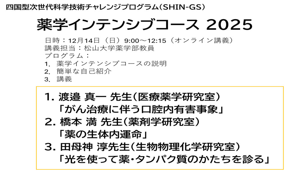 薬学の魅力をオンラインで体感―四国型次世代科学技術チャレンジプログラム「薬学インテンシブコース」を開講—