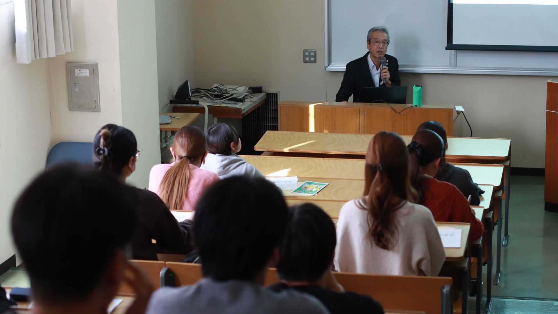 消費生活センター職員であり、本学のOBでもある濱瀬様から、消費生活センターでの取り組み、愛媛県内での消費者問題の状況や実際の事例等について、丁寧に解説していただきました。