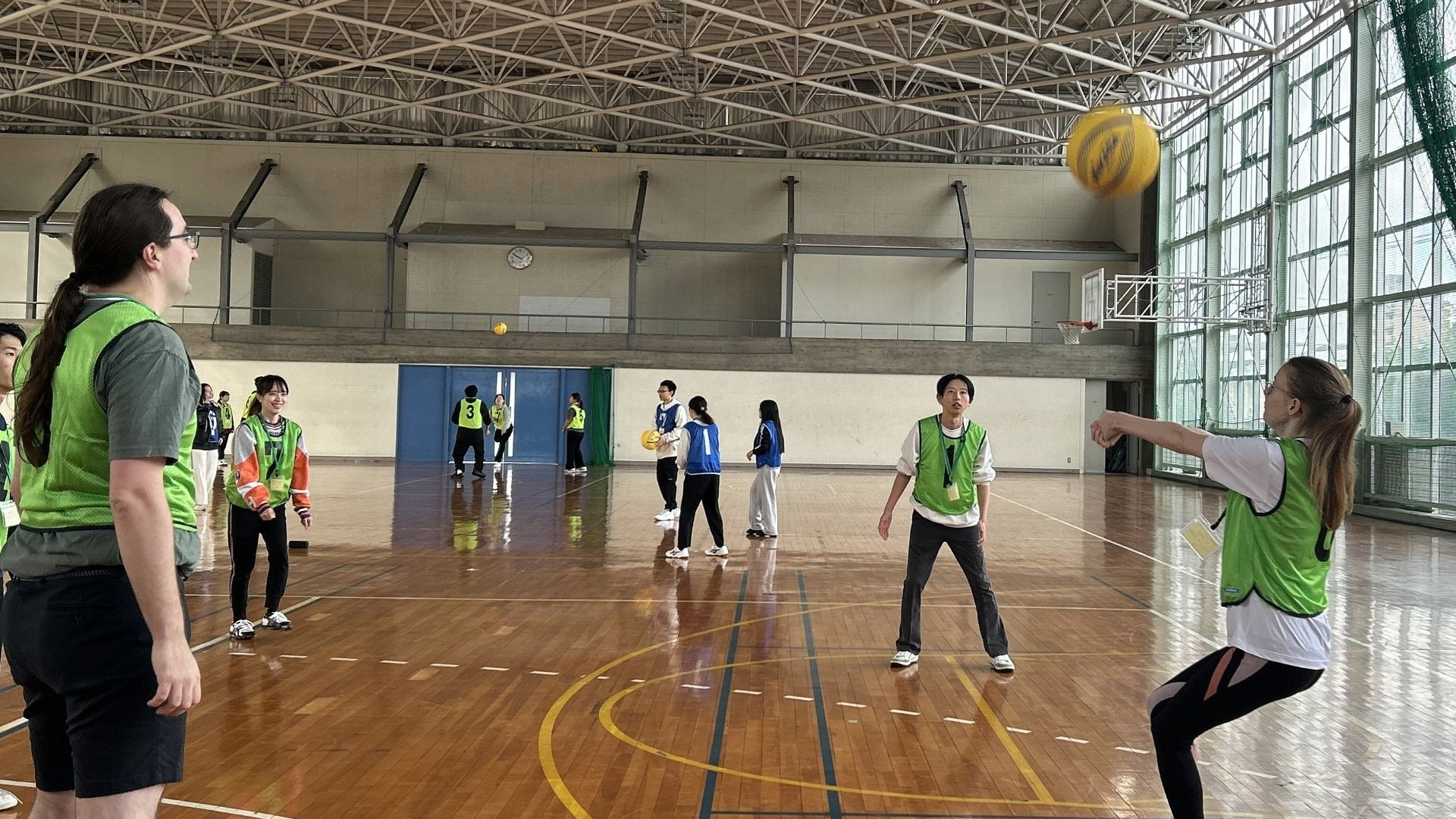 2025年11月11日(火曜日)に、本学の第一体育館にて留学生と日本人学生との交流を目的としたソフトバレーボール大会を開催し、留学生9名、日本人学生13名の計22名の学生が参加しました。