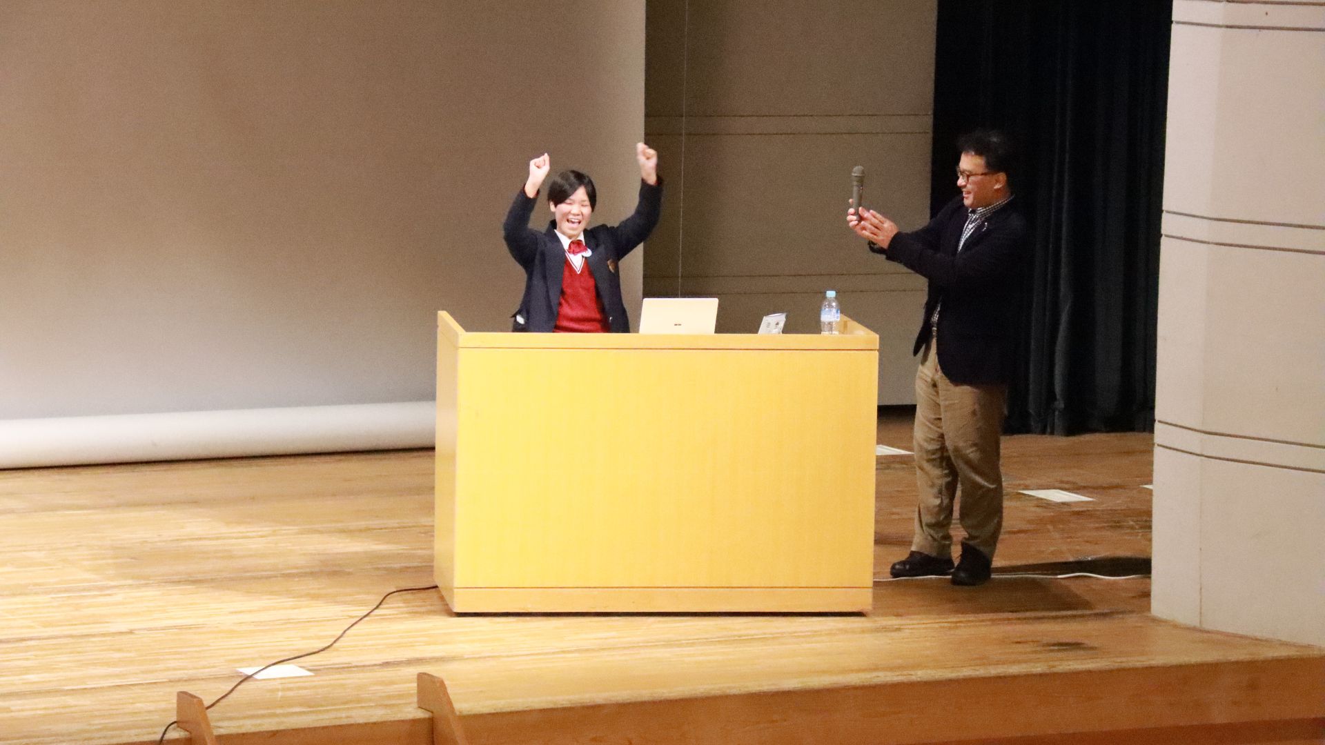 檀裕也情報学部長による「思考ゲームのプログラミング」と題した模擬講義では、実際に情報学部生がAIを活用して学習させたオセロのプログラムと生徒が対決し、会場は大盛り上がりでした。