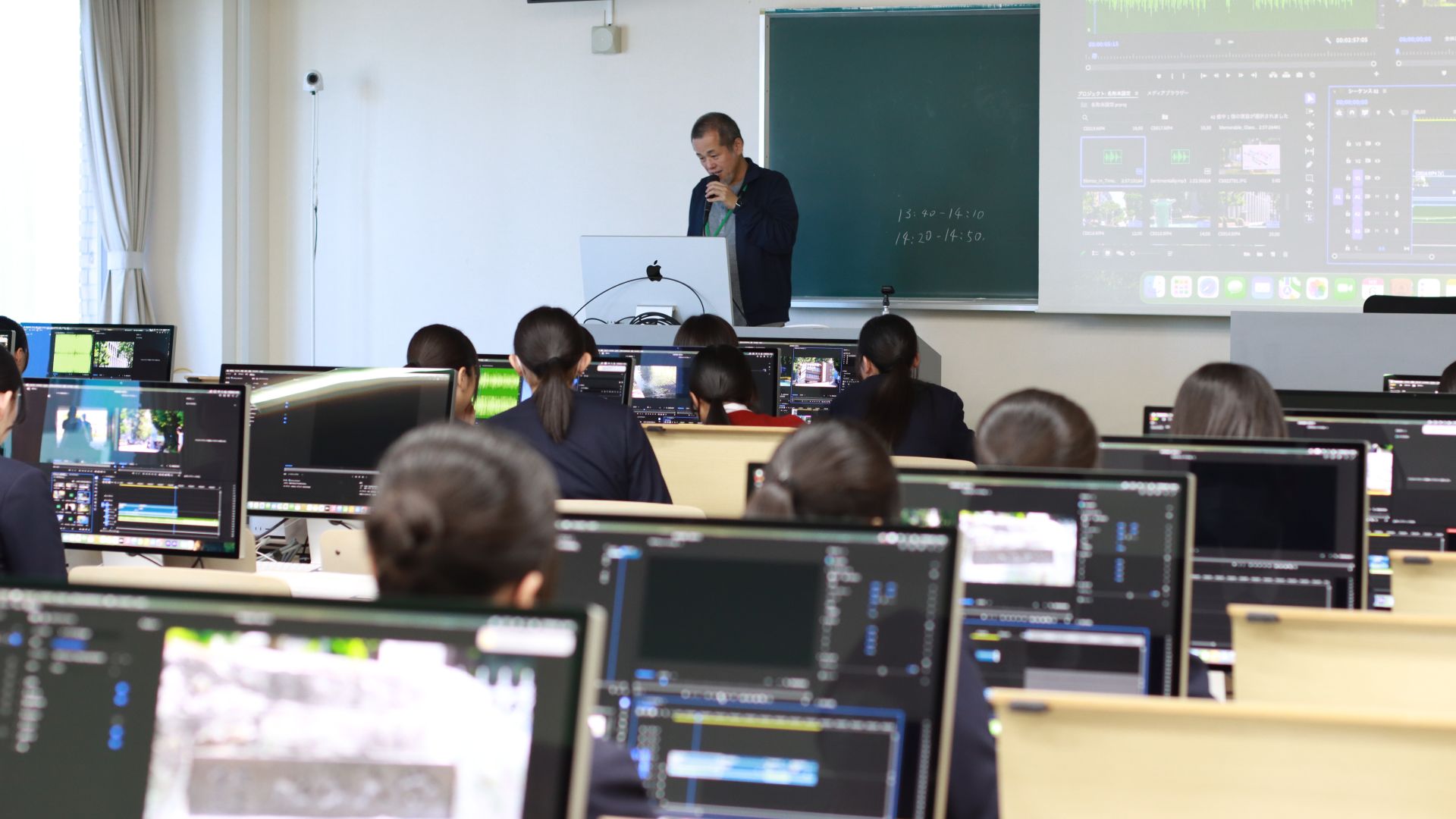 最後の情報学部体験コーナーでは、「Unityによる坊ちゃん団子ゲームプログラミング」「映像編集入門」「流れと音が結びつくとき」の3つのプログラムから希望するものを選択してもらい、実際に情報学部生が授業で使用しているパソコンや研究活動で使用している機材に触れて体験してもらいました。
