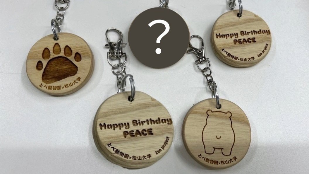松山大学では、愛媛県立とべ動物園の人気者「ピース」などをモチーフとした木製キーホルダーが完成しました。