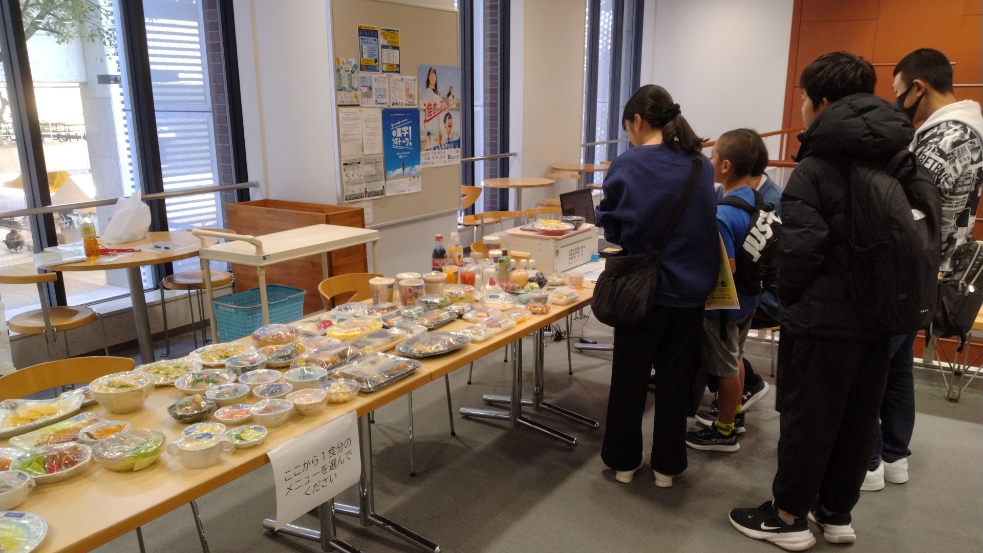ブース③は、本物さながらに作られたフードモデルを使って一食分の食事の栄養バランスをチェックしてもらう体験コーナーでした。トレーにのせた料理を専用のセンサーボックスにのせると、瞬時に栄養バランスが判定される様子が面白く、子供から大人まで夢中になって取り組んでいる光景が印象的でした。