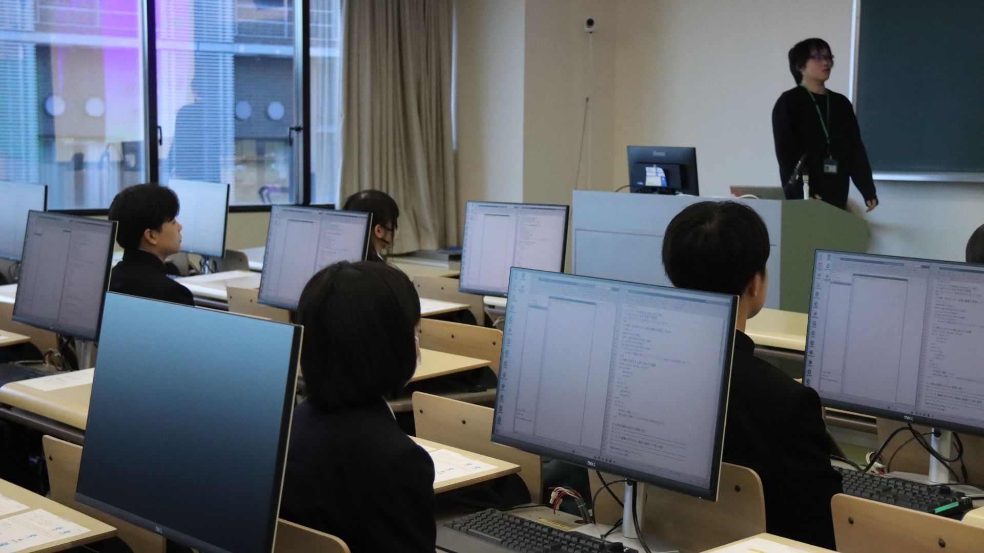 最後の情報学部情報学科の森田雅貴講師による「デジタル画像の仕組みとその応用」と題した模擬講義では、実際にパソコンを操作し、デジタル画像を加工・合成するプログラムを作成しました。