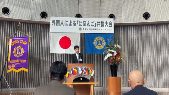 2026年1月25日(日曜日)、松山湯築ライオンズクラブが主催する「第16回 外国人によるにほんご弁論大会」がいよてつ高島屋8階スカイドームにて開催されました。松山大学からは、ミャンマー出身の留学生のカン・ニャー・トーさん(経済1年)とベトナム出身のキエウ・ヴァン・チュオンさん(経済2年)が出場し、それぞれ最優秀賞と審査員賞を受賞しました。