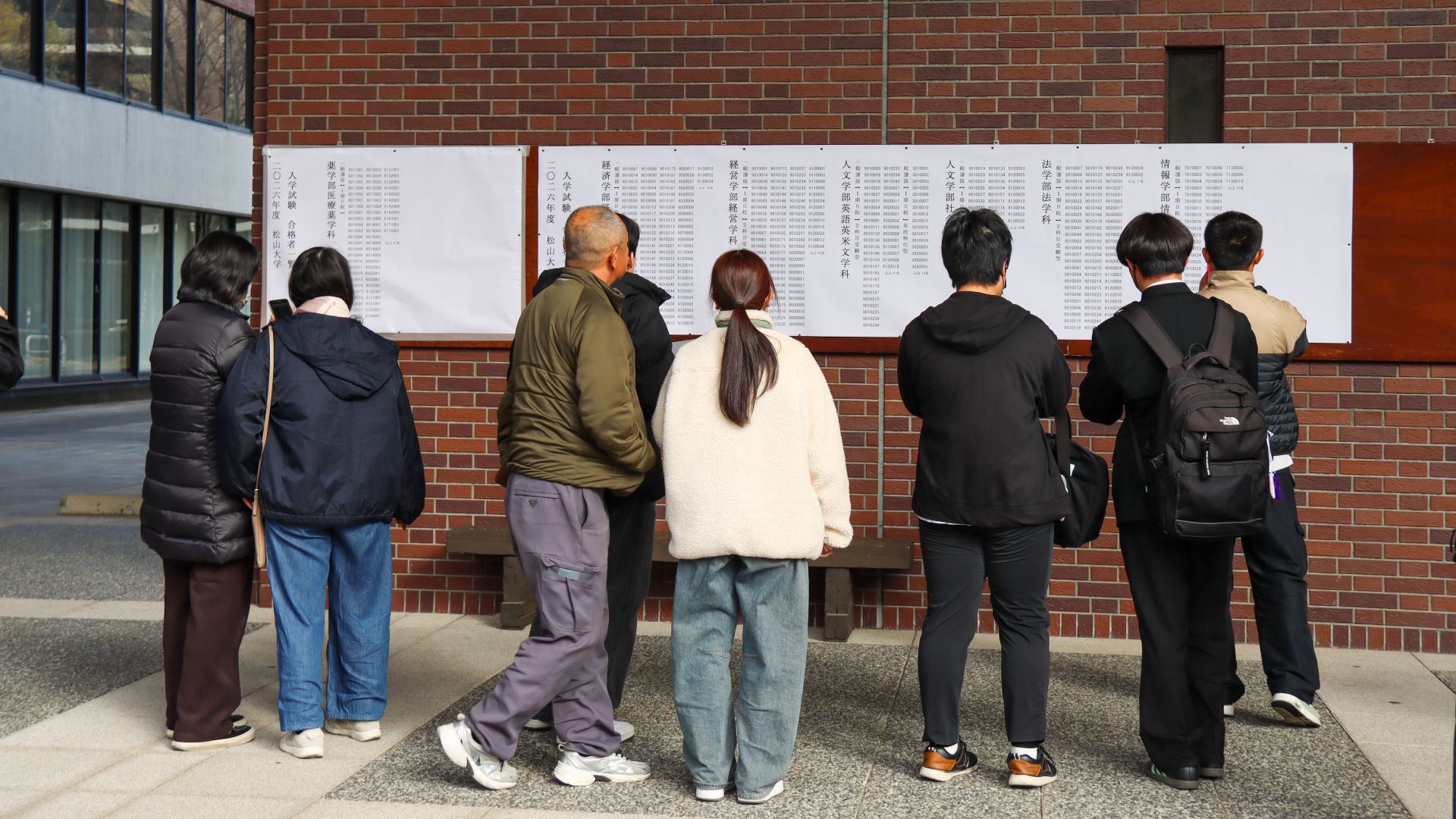 掲示板の前では、ご自身の受験番号を一つひとつ確認される受験生や保護者の皆様の姿が見られました。合格を手にし、安堵の表情で記念撮影をされる方や、ご家族と喜びを分かち合う姿が見受けられました。