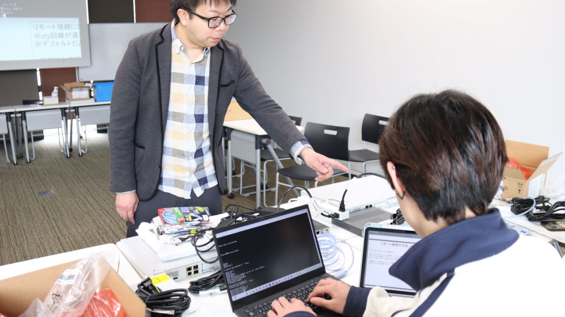 続く演習では、実機やシミュレーション環境を活用し、ネットワーク設定やトラブルシューティングの基礎演習を実施。受講生は理論の理解にとどまらず、実際に手を動かしながら技術を体得し、「手を動かせるエンジニア」として地域社会およびグローバルな舞台で活躍することを目指して、真剣な姿勢で取り組んでいました。