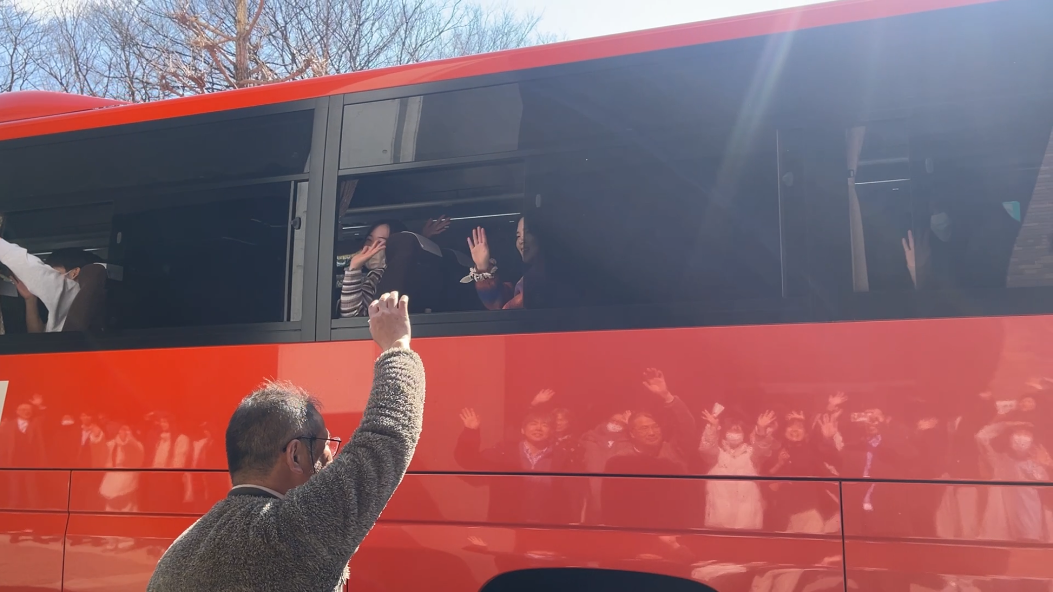 出発時には多くの方々が駆けつけ、盛大な見送りとなりました。薬学部教職員や研究室の後輩から温かい激励の言葉が贈られるなど、和やかな雰囲気の中での出発となり、受験生たちは緊張の中にも落ち着いた表情でバスに乗り込みました。