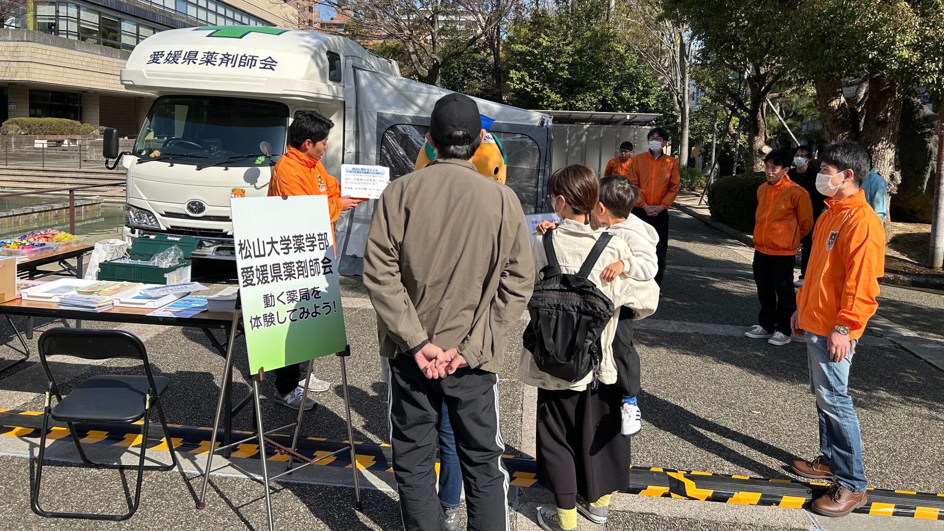 2026年3月1日(日曜日)に松山市総合コミュニティセンターで行われたあいテレビ主催のイベント「せーのっ!えひめ防災&健康フェスタ2026」に薬学部が愛媛県薬剤師会と協力して「動く薬局を体験してみよう!」のブースを出展しました。本学からは、4名の教職員と3名の学生が参加。当日は、少し汗ばむようなぽかぽか陽気の中、約450名もの方々にご来場いただき、大盛況にて終えることができました。当日、本ブースにお立ち寄りくださいました皆様、誠にありがとうございました。