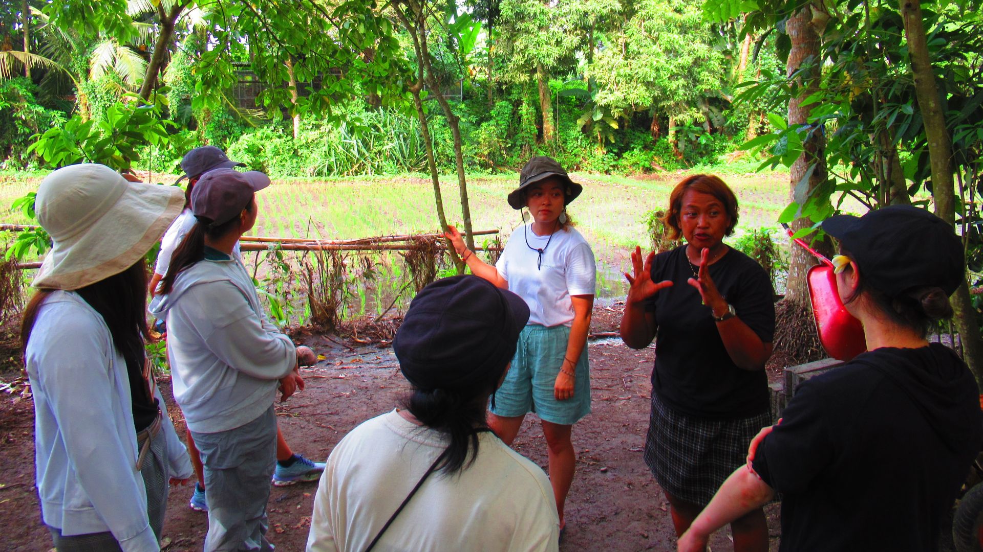 次に訪れたのは、リゾート開発の影響により消滅の危機に瀕している村です。観光客が大量の水を使用することで、地元の農家は水不足や食料不足、それに伴う収入の減少に苦しんでいます。唯一の財産である土地を海外の投資家に売却せざるを得ない現状もあり、村の豊かな自然や伝統文化の消失が危惧されています。学生たちはこの村で、エコツーリズムや森林再生に取り組むNGOの講話を聞き、実際に植林活動を体験しました。さらに、村の一般家庭にホームステイを行い、寝食を共にすることで地元の人々との絆を深めました。