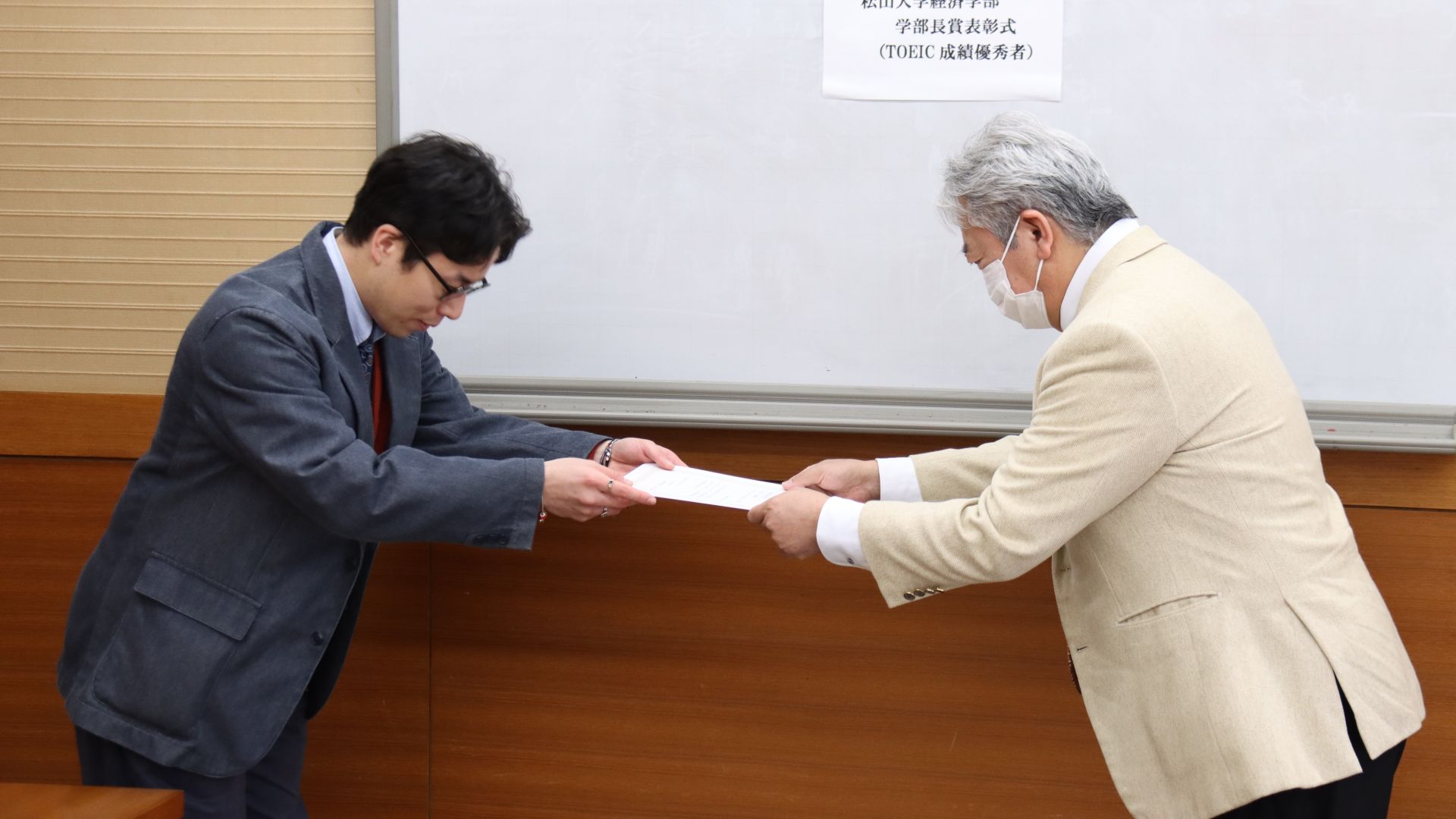 2026年3月6日(金曜日)、松山大学東本館7階会議室において、2025(令和7)年度経済学部長賞(TOEIC成績優秀者)表彰式が行われました。