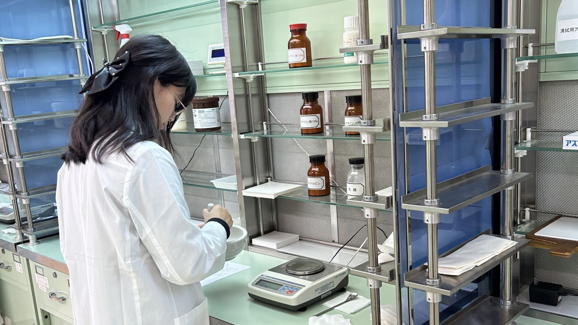薬学部の特別プログラムでは模擬講義や学科紹介に加えて、調剤・製剤の実習体験を行いました。探究心あふれる熱心な参加者の姿が見受けられました。
