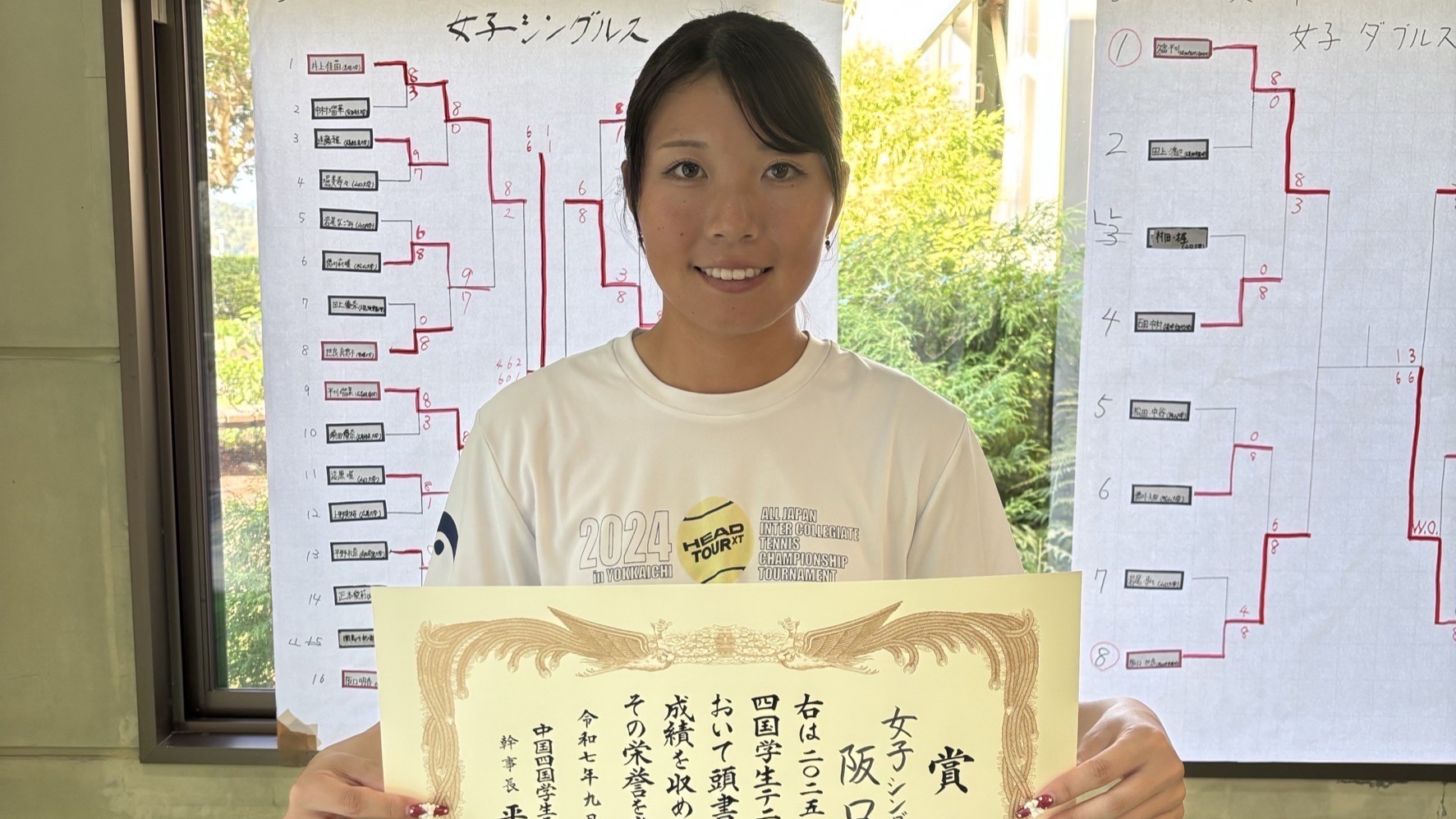 女子シングルスで本学経済学部4年の阪口明香選手が初の栄冠に輝きました。また、男子ダブルスでは沖本将生選手(経営4年)・河野優選手(法3年)組が春季大会に続き優勝しました。