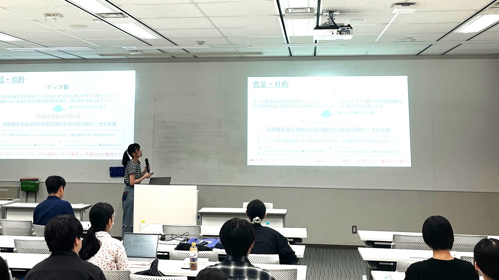 2025年9月20日(土曜日)、21日(日曜日)、岡山県立大学にて、薬学部生薬学研究室と岡山県立大学保健福祉学部栄養学科機能性食品開発学研究室による2025年度合同セミナーが開催されました。本合同セミナーは、同じ医療現場における他職種である薬剤師、管理栄養士を目指す学生が、同じ天然物研究を通して健康や医療について考え交流することを目的に、2015年松山大学で第1回目を開催したのがはじまりで、今回で6回目になります。昨年度は台風で中止となり、今回は2年ぶりの開催となりました。