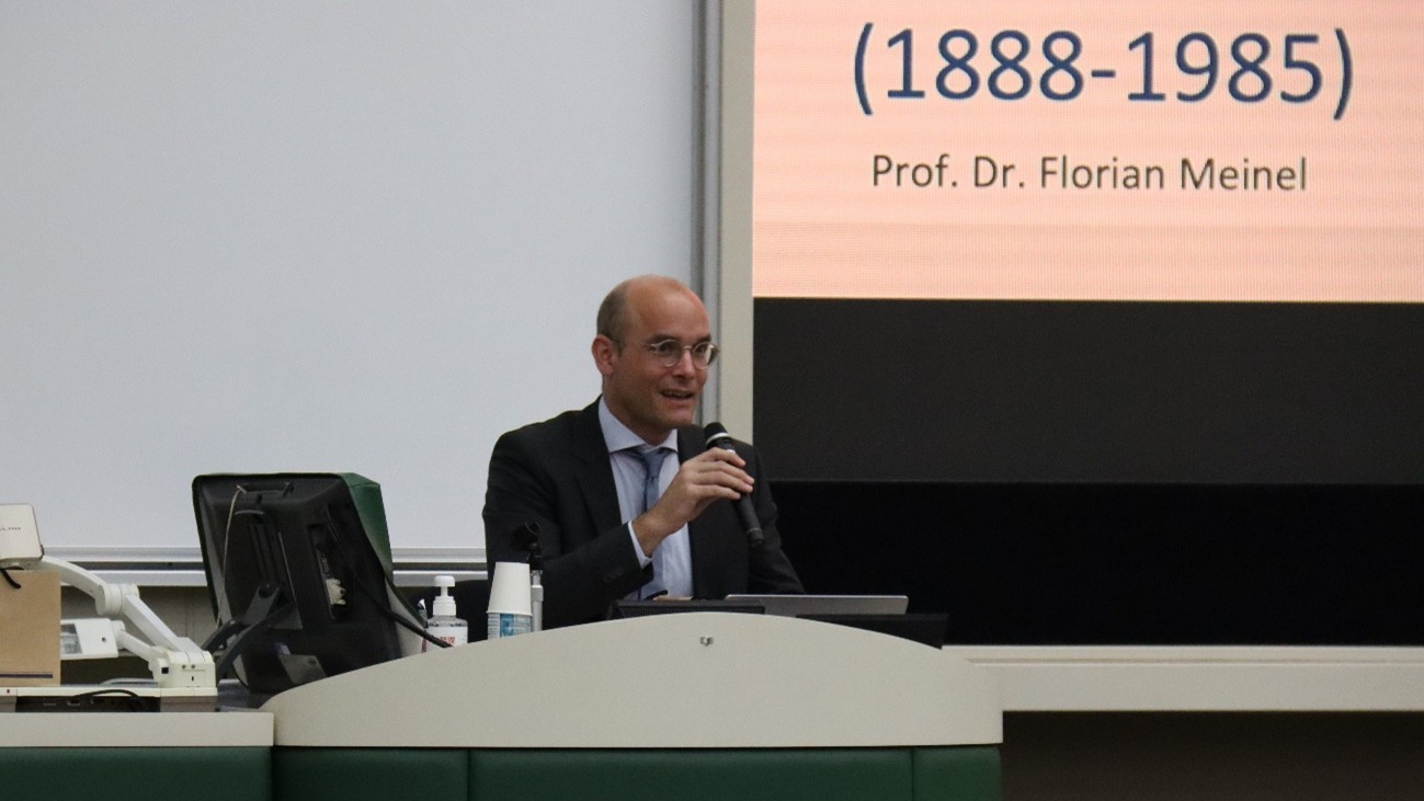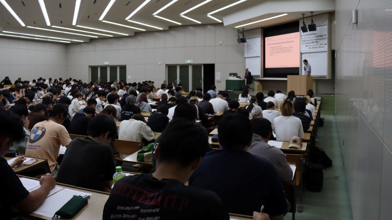 2025年10月14日(火曜日)、ドイツのゲッティンゲン大学法学部教授のフロリアン・マイネル氏をお招きし、16時00分から松山大学東本館7階会議室2にて松山大学学術研究会が、18時00分から8号館821教室にて松山大学法学部学術講演会が開催されました。研究会・講演会合わせて約400名が出席し、有意義な学びの場となりました。
