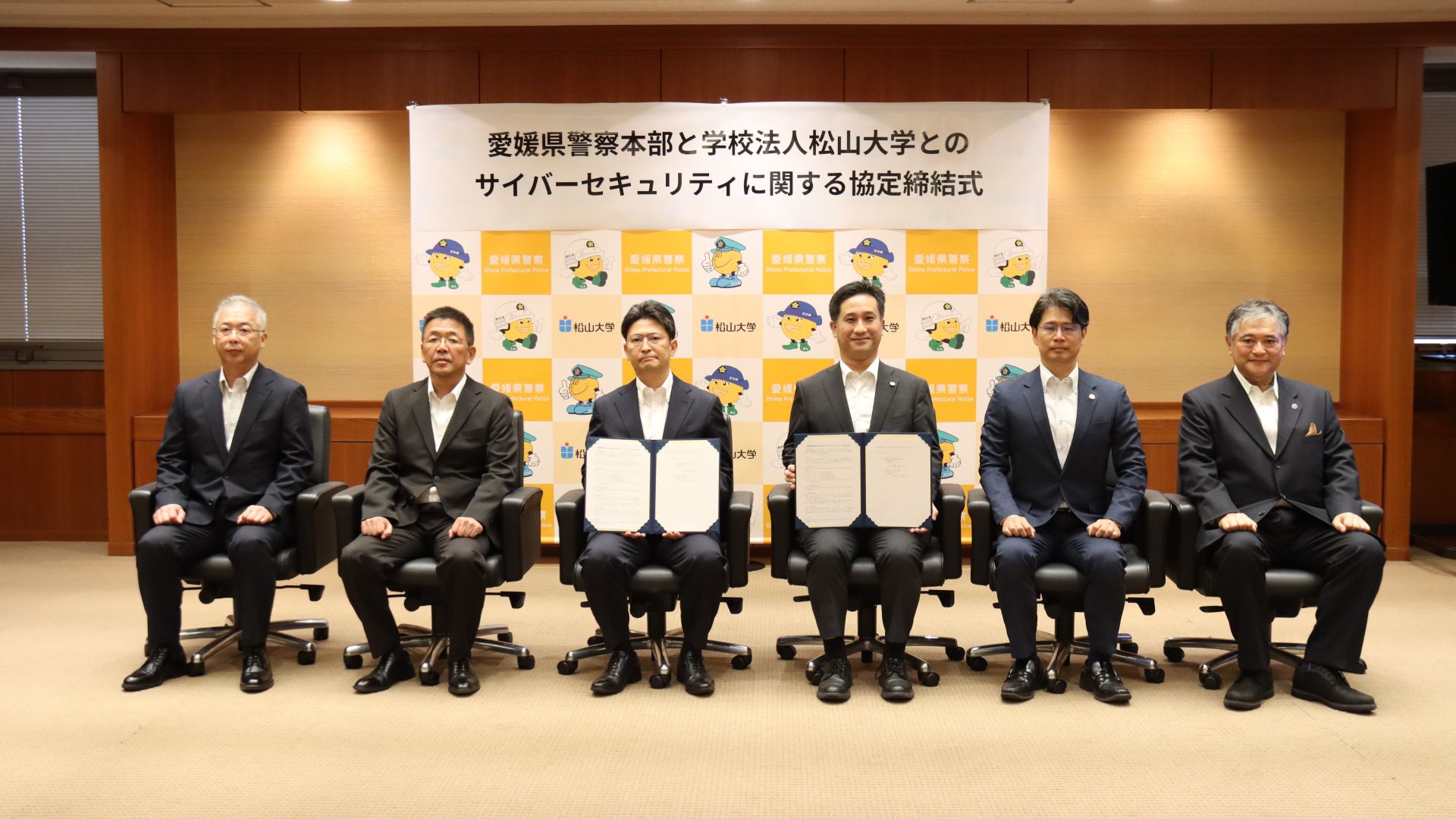 学校法人松山大学は2025年10月20日(月曜日)、愛媛県警察本部とサイバーセキュリティに関する協定を締結しました。サイバー人材の確保・育成に関する協定締結は、愛媛県警察本部として、初めての試みとなるものです。この協定は、本学と愛媛県警察本部が相互に連携・協力し、地域社会におけるサイバーセキュリティに関する諸課題に対応するとともに、サイバー空間における地域社会の諸課題への対処に向けた安全・安心を確保することを目的としています。